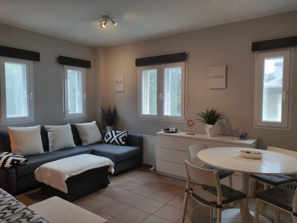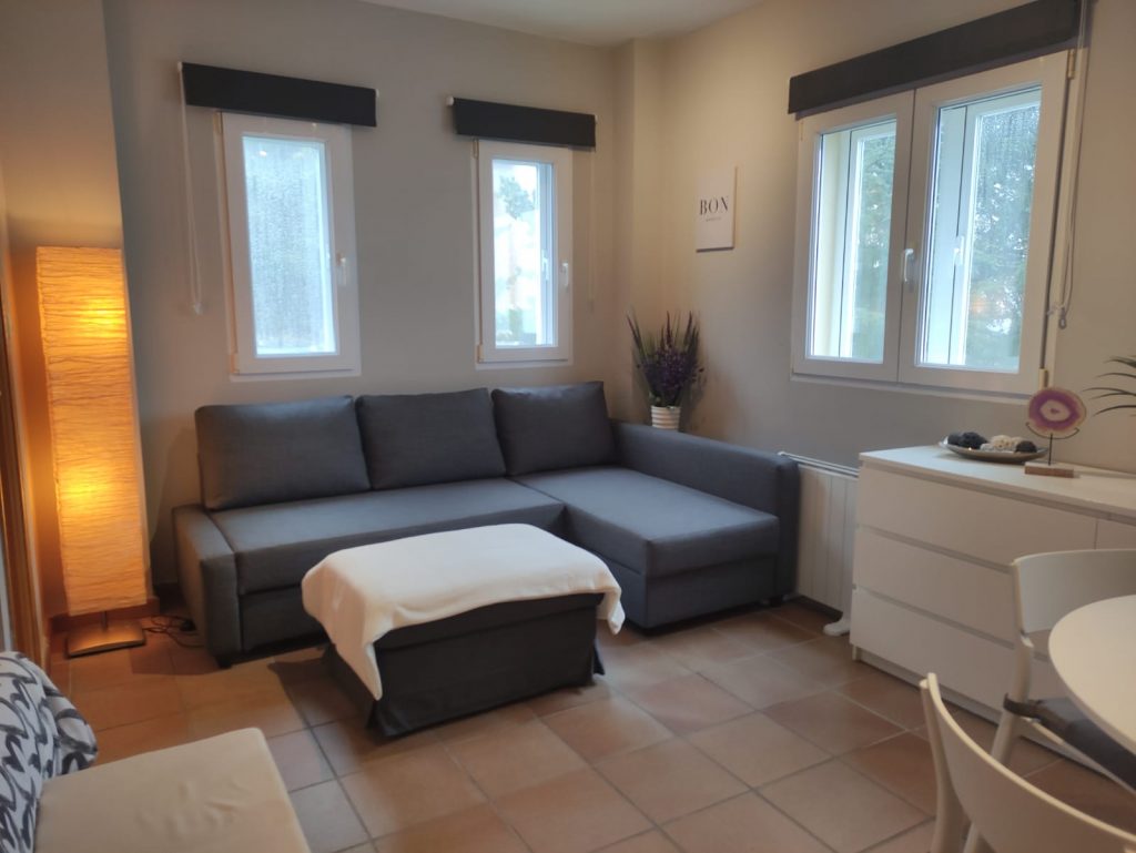 Sofá cama con chaise longue, mueble de salón y televisión. Calefacción. Juego de sábanas completo. Cama de matrimonio. Doble acristalamiento en toda la vivienda. Puerta blindada.